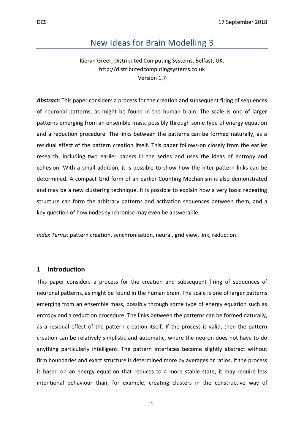 This paper considers a process for the creation and subsequent firing of sequences of neuronal patterns, as might be found in the human brain. The scale is one of larger patterns emerging from an ensemble mass, possibly through some type of energy equation and a reduction procedure. The links between the patterns can be formed naturally, as a residual effect of the pattern creation itself. This paper follows-on closely from the earlier research, including two earlier papers in the series and uses the ideas of entropy and cohesion. With a small addition, it is possible to show how the inter-pattern links can be determined. A compact Grid form of an earlier Counting Mechanism is also demonstrated and may be a new clustering technique. It is possible to explain how a very basic repeating structure can form the arbitrary patterns and activation sequences between them, and a key question of how nodes synchronise may even be answerable.