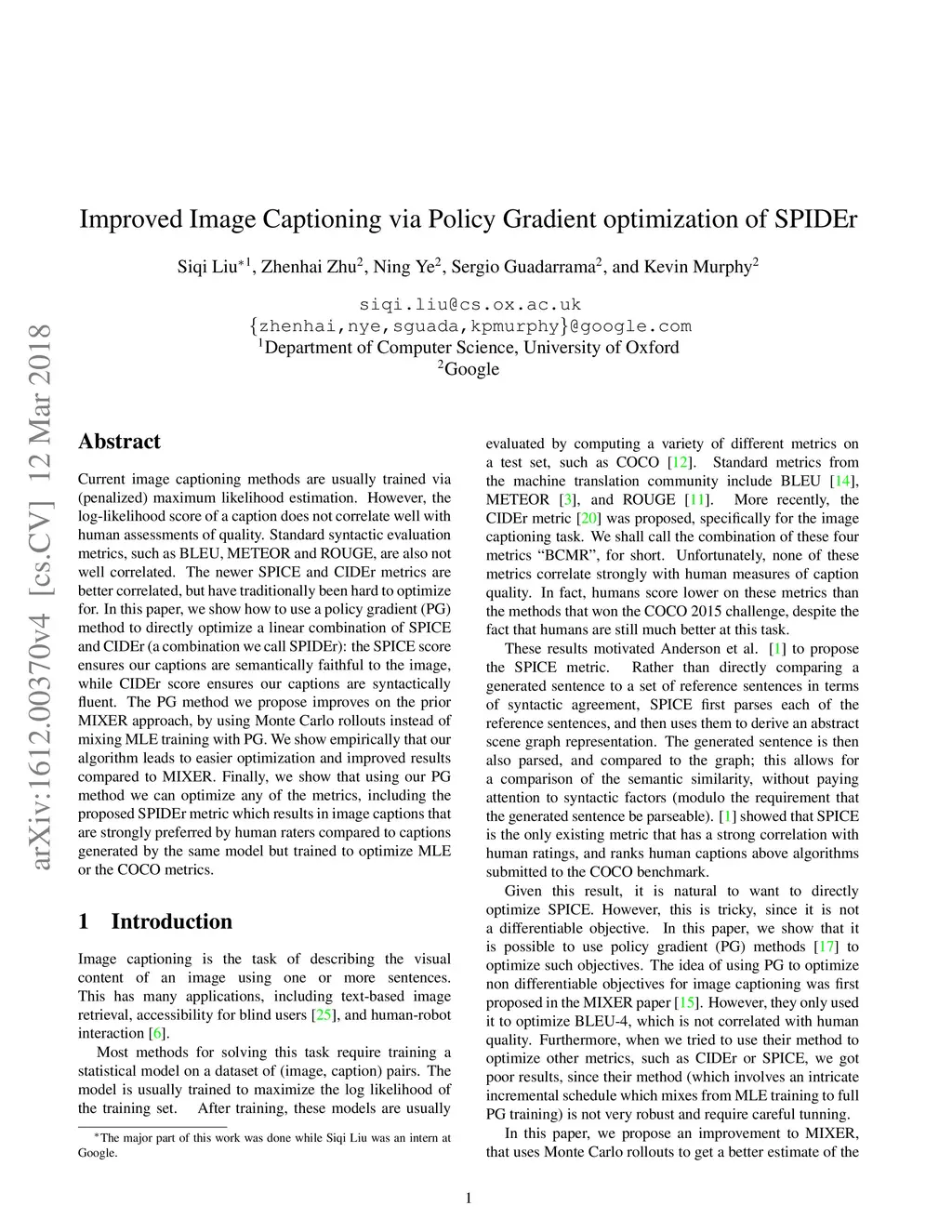 Improved Image Captioning via Policy Gradient optimization of SPIDEr