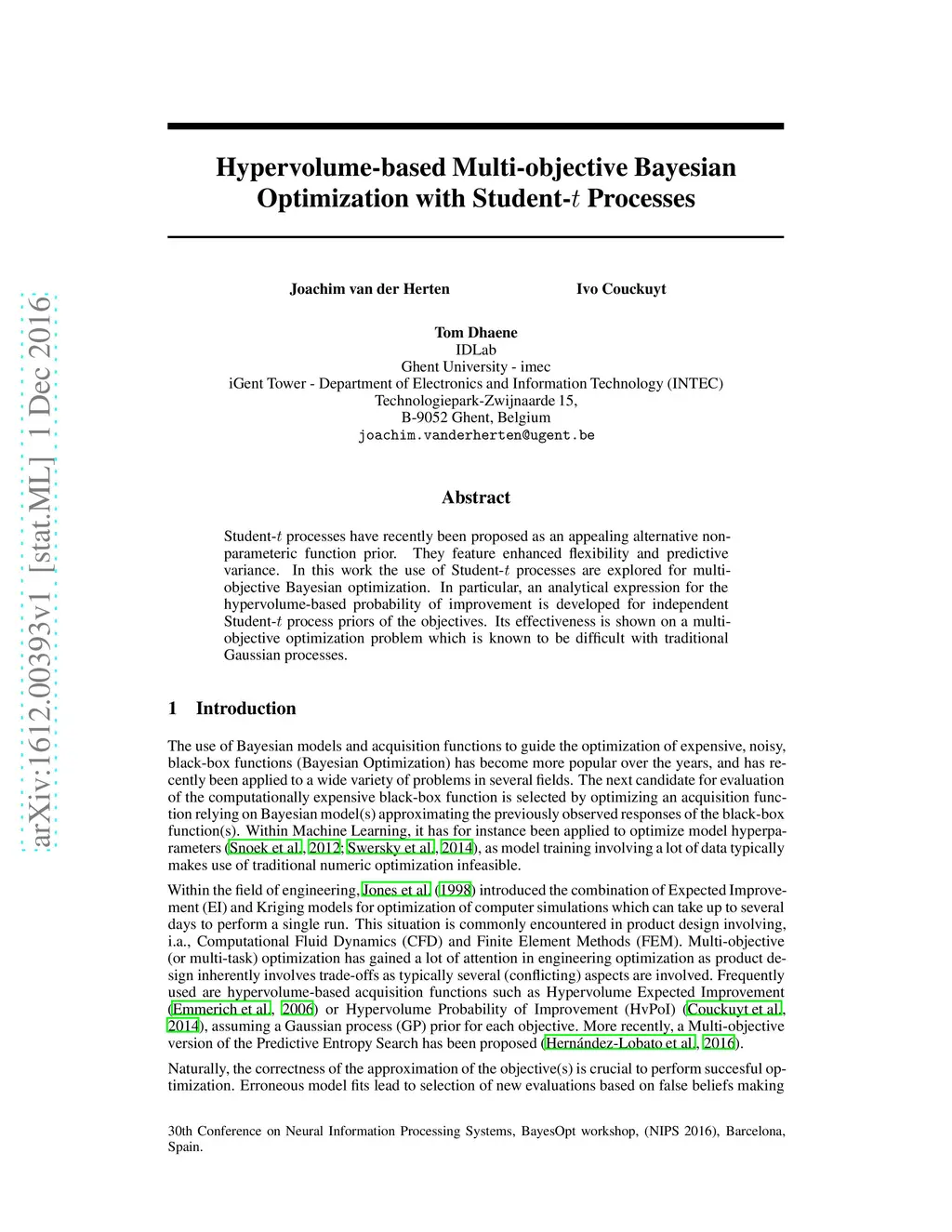 Hypervolume-based Multi-objective Bayesian Optimization with Student-t