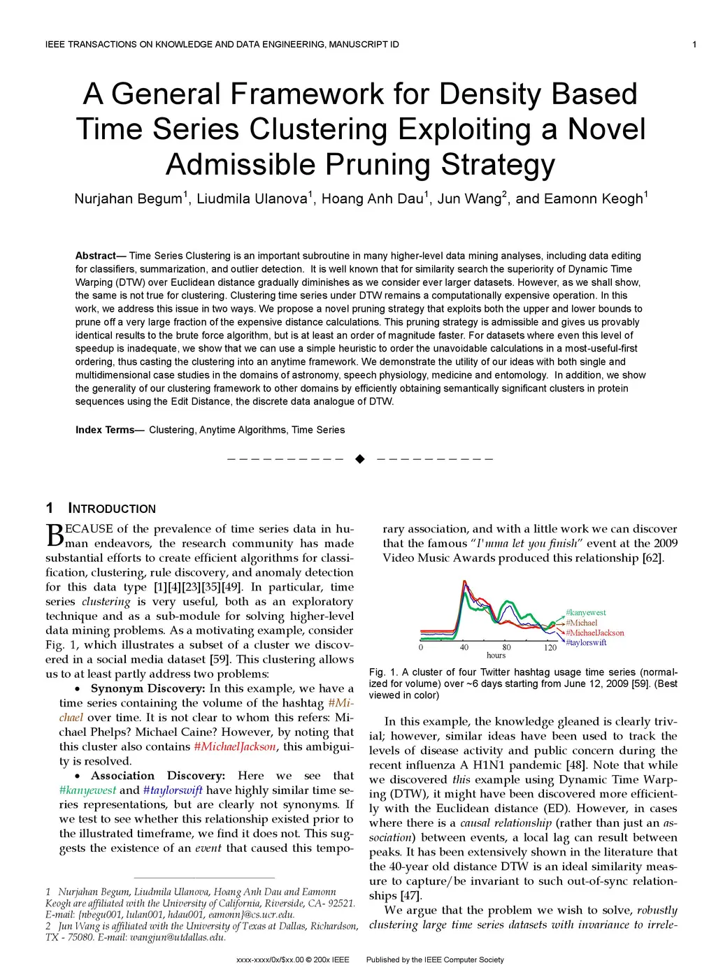Time Series Clustering is an important subroutine in many higher-level data mining analyses, including data editing for classifiers, summarization, and outlier detection. It is well known that for similarity search the superiority of Dynamic Time Warping (DTW) over Euclidean distance gradually diminishes as we consider ever larger datasets. However, as we shall show, the same is not true for clustering. Clustering time series under DTW remains a computationally expensive operation. In this work, we address this issue in two ways. We propose a novel pruning strategy that exploits both the upper and lower bounds to prune off a very large fraction of the expensive distance calculations. This pruning strategy is admissible and gives us provably identical results to the brute force algorithm, but is at least an order of magnitude faster. For datasets where even this level of speedup is inadequate, we show that we can use a simple heuristic to order the unavoidable calculations in a most-useful-first ordering, thus casting the clustering into an anytime framework. We demonstrate the utility of our ideas with both single and multidimensional case studies in the domains of astronomy, speech physiology, medicine and entomology. In addition, we show the generality of our clustering framework to other domains by efficiently obtaining semantically significant clusters in protein sequences using the Edit Distance, the discrete data analogue of DTW.