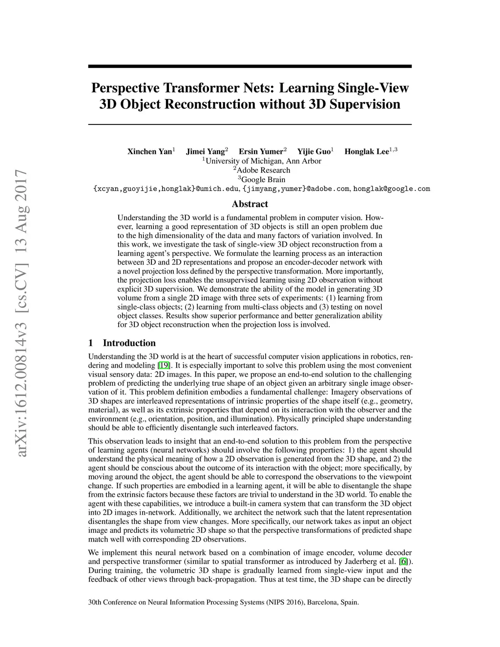 Perspective Transformer Nets: Learning Single-View 3D Object