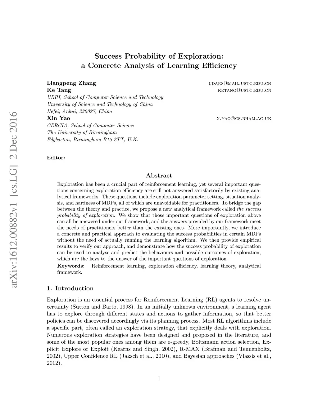 Success Probability of Exploration: a Concrete Analysis of Learning
