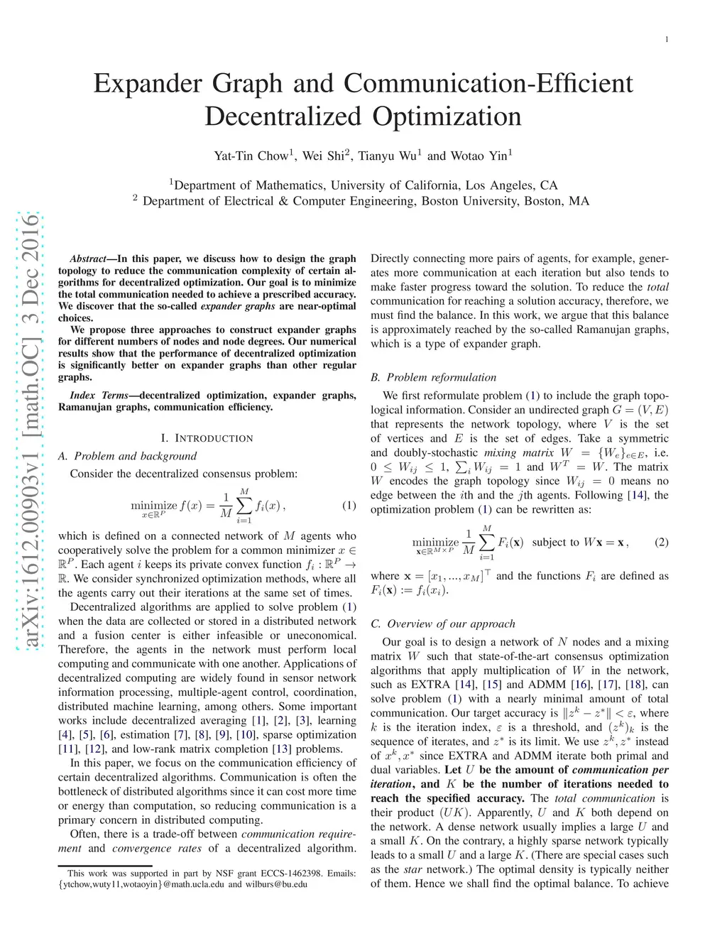 Expander Graph and Communication-Efficient Decentralized Optimization