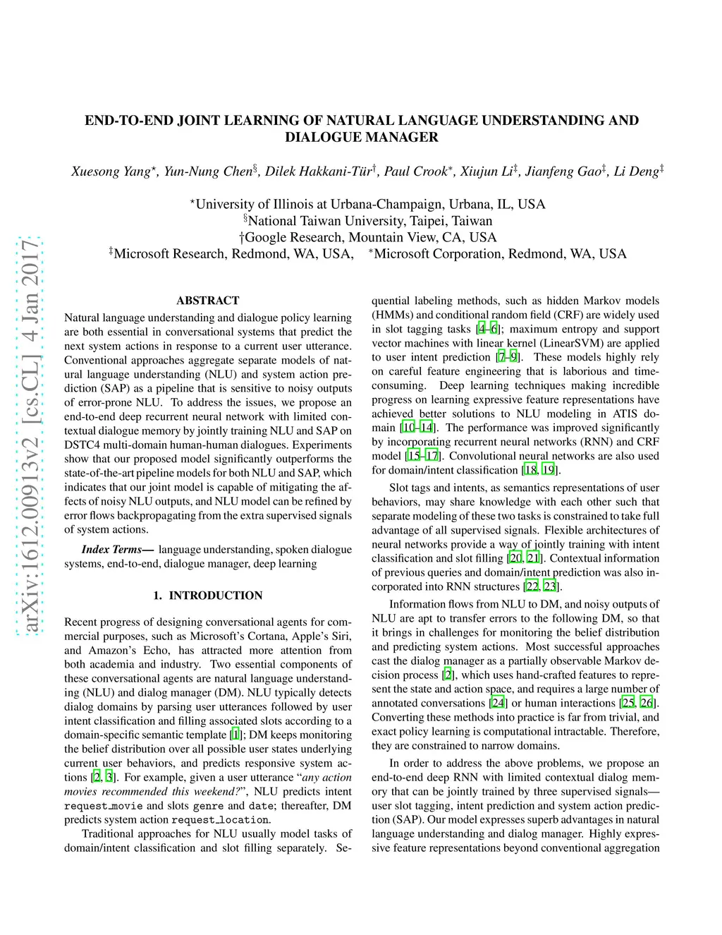 End-to-End Joint Learning of Natural Language Understanding and Dialogue Manager