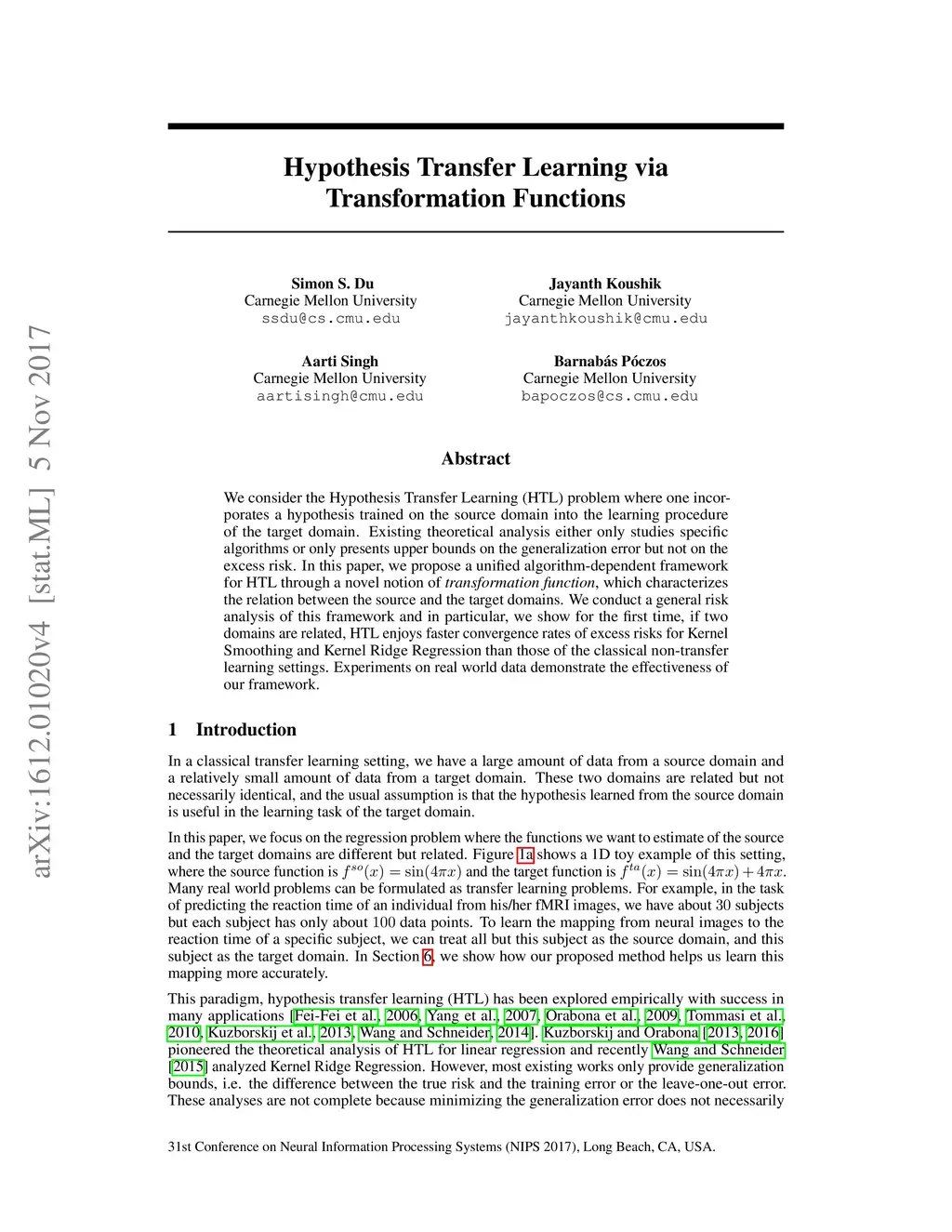 Hypothesis Transfer Learning via Transformation Functions