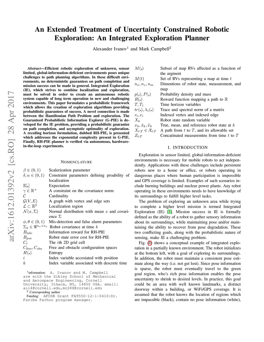 An Extended Treatment of Uncertainty Constrained robotic Exploration: An