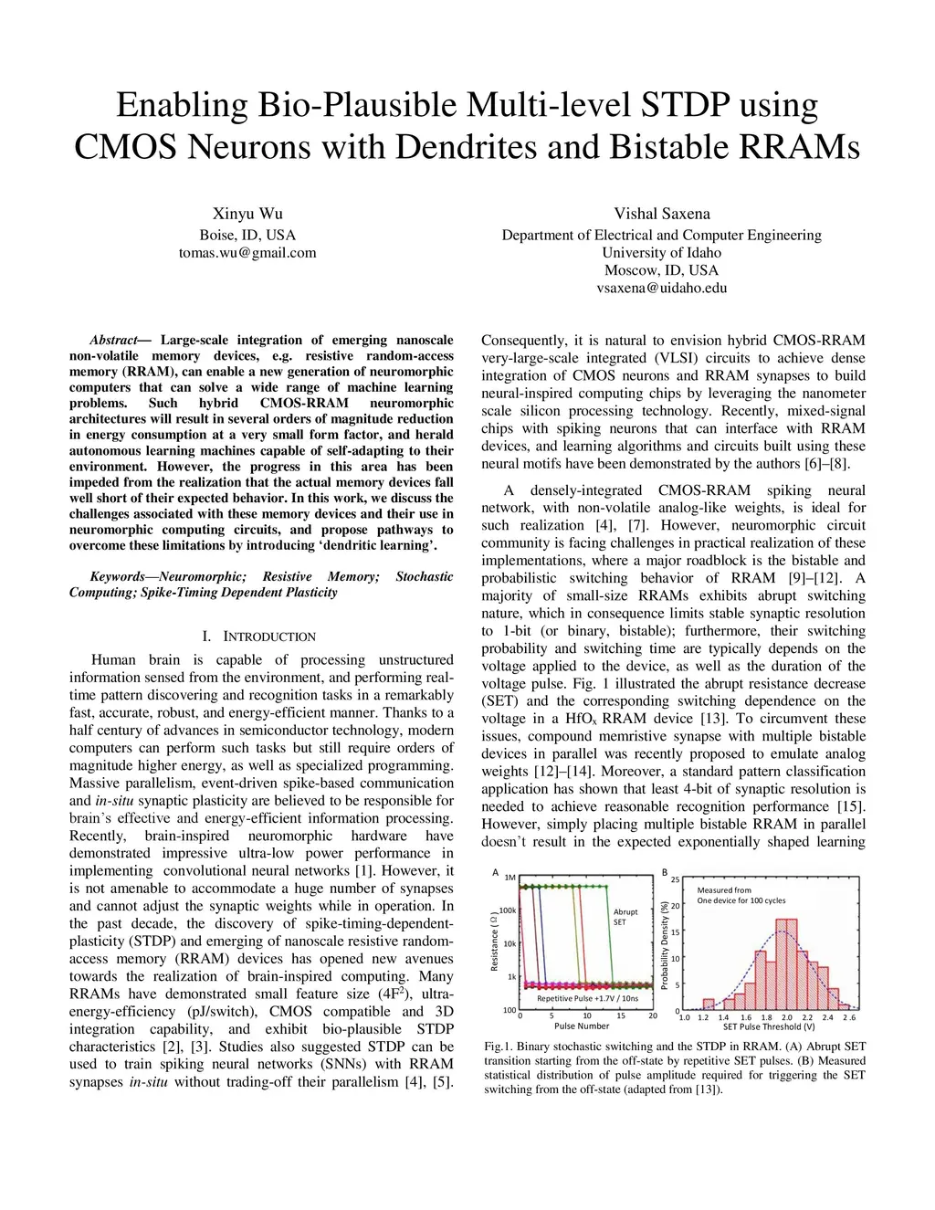 Large-scale integration of emerging nanoscale non-volatile memory devices, e.g. resistive random-access memory (RRAM), can enable a new generation of neuromorphic computers that can solve a wide range of machine learning problems. Such hybrid CMOS-RRAM neuromorphic architectures will result in several orders of magnitude reduction in energy consumption at a very small form factor, and herald autonomous learning machines capable of self-adapting to their environment. However, the progress in this area has been impeded from the realization that the actual memory devices fall well short of their expected behavior. In this work, we discuss the challenges associated with these memory devices and their use in neuromorphic computing circuits, and propose pathways to overcome these limitations by introducing 'dendritic learning'.