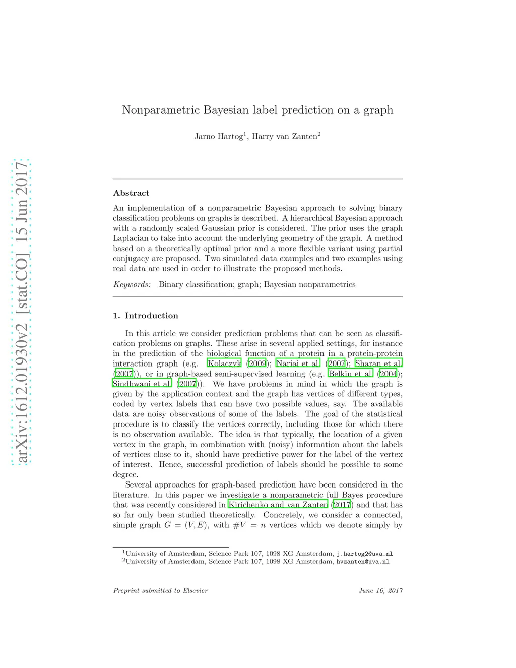 Nonparametric Bayesian label prediction on a graph