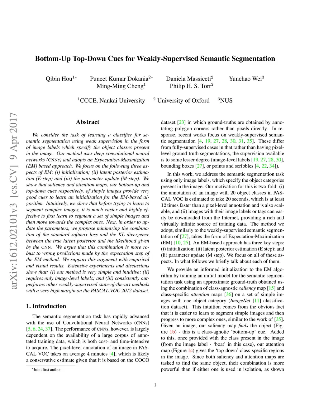 Bottom-Up Top-Down Cues for Weakly-Supervised Semantic Segmentation