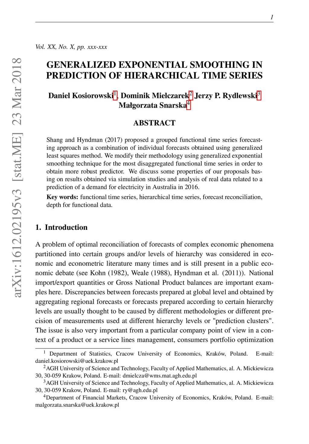Generalized Exponential smoothing in prediction of hierarchical time