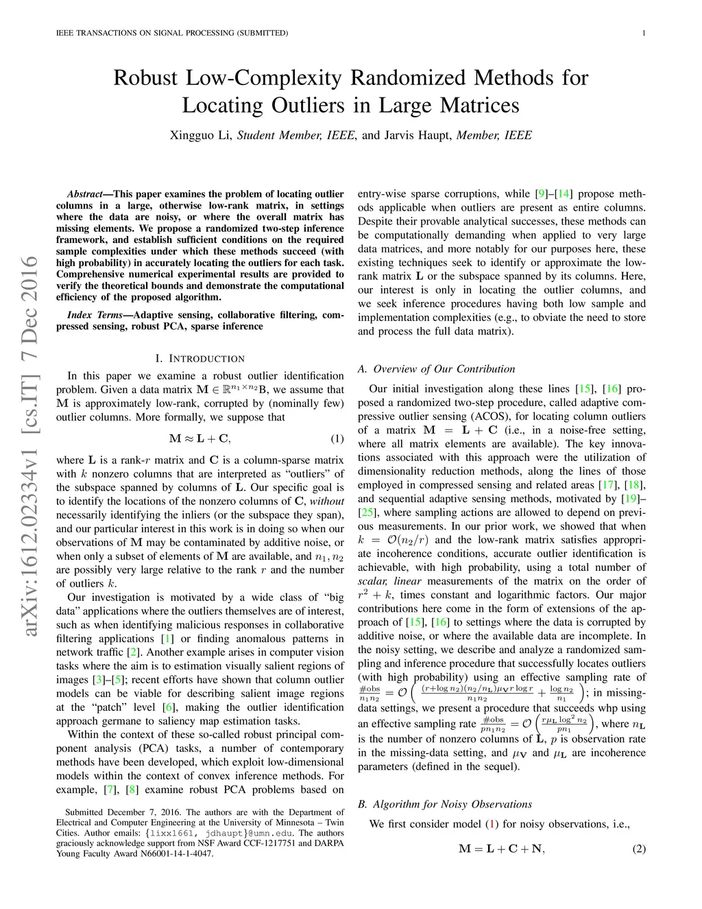 Robust Low-Complexity Randomized Methods for Locating Outliers in Large