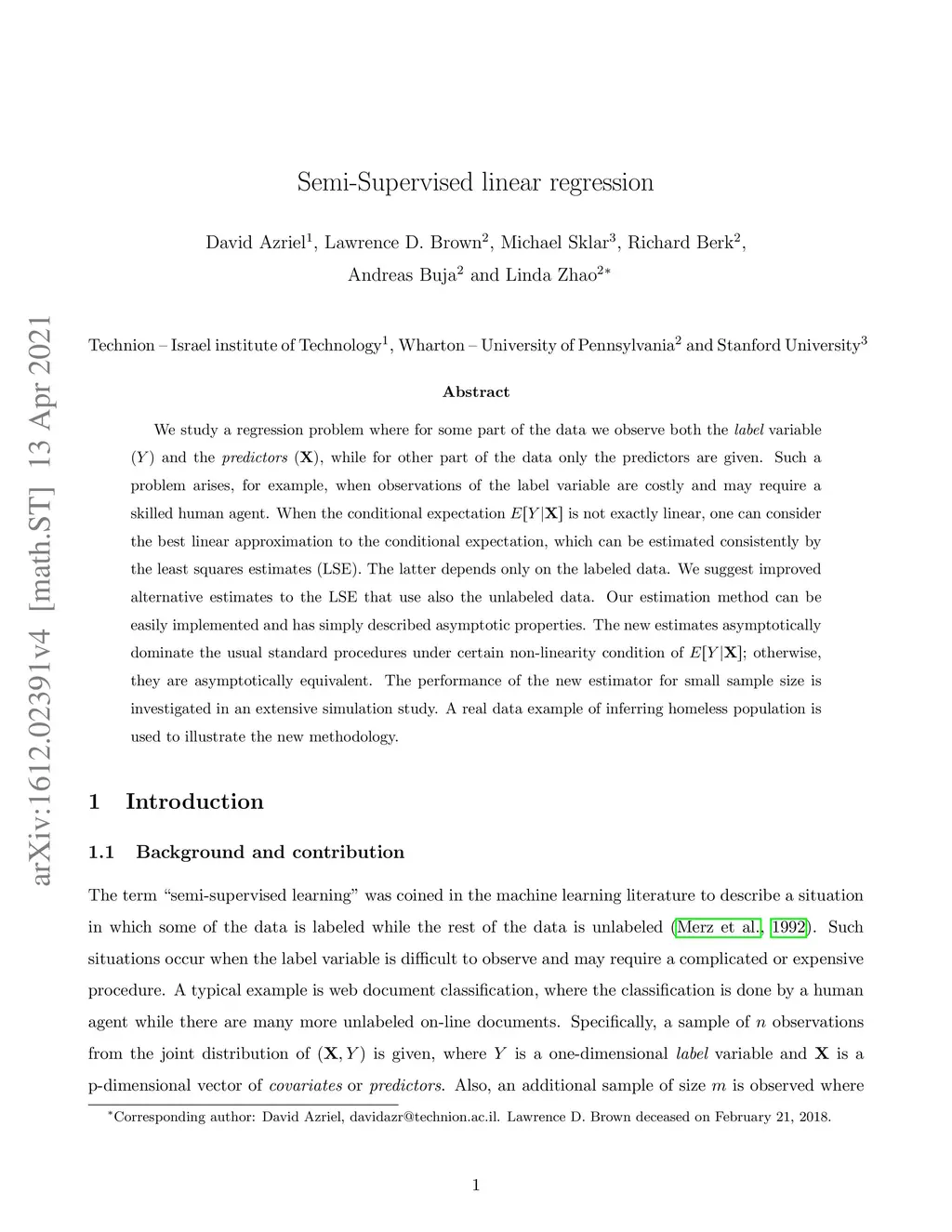 We study a regression problem where for some part of the data we observe both the label variable () and the predictors (), while for other part of the data only the predictors are given. Such a problem arises, for example, when observations of the label variable are costly and may require a skilled human agent. When the conditional expectation is not exactly linear, one can consider the best linear approximation to the conditional expectation, which can be estimated consistently by the least squares estimates (LSE). The latter depends only on the labeled data. We suggest improved alternative estimates to the LSE that use also the unlabeled data. Our estimation method can be easily implemented and has simply described asymptotic properties.The new estimates asymptotically dominate the usual standard procedures under certain non-linearity condition of ; otherwise, they are asymptotically equivalent.The performance of the new estimator for small sample size is investigated in an extensive simulation study. A real data example of inferring homeless population is used to illustrate the new methodology.