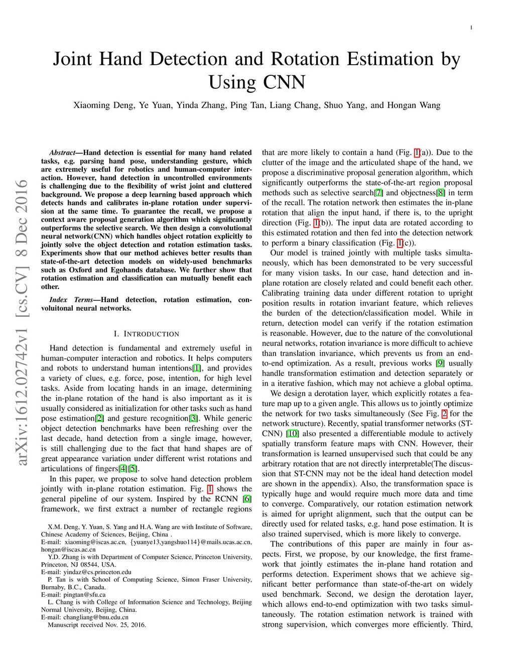 Joint Hand Detection and Rotation Estimation by Using CNN