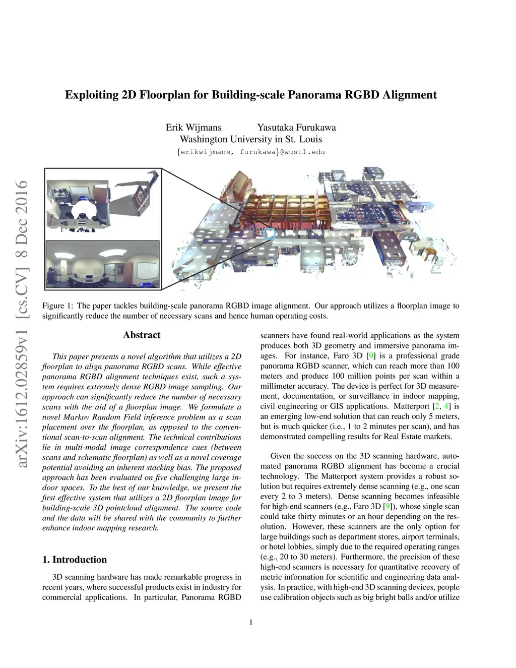 Exploiting 2D Floorplan for Building-scale Panorama RGBD Alignment