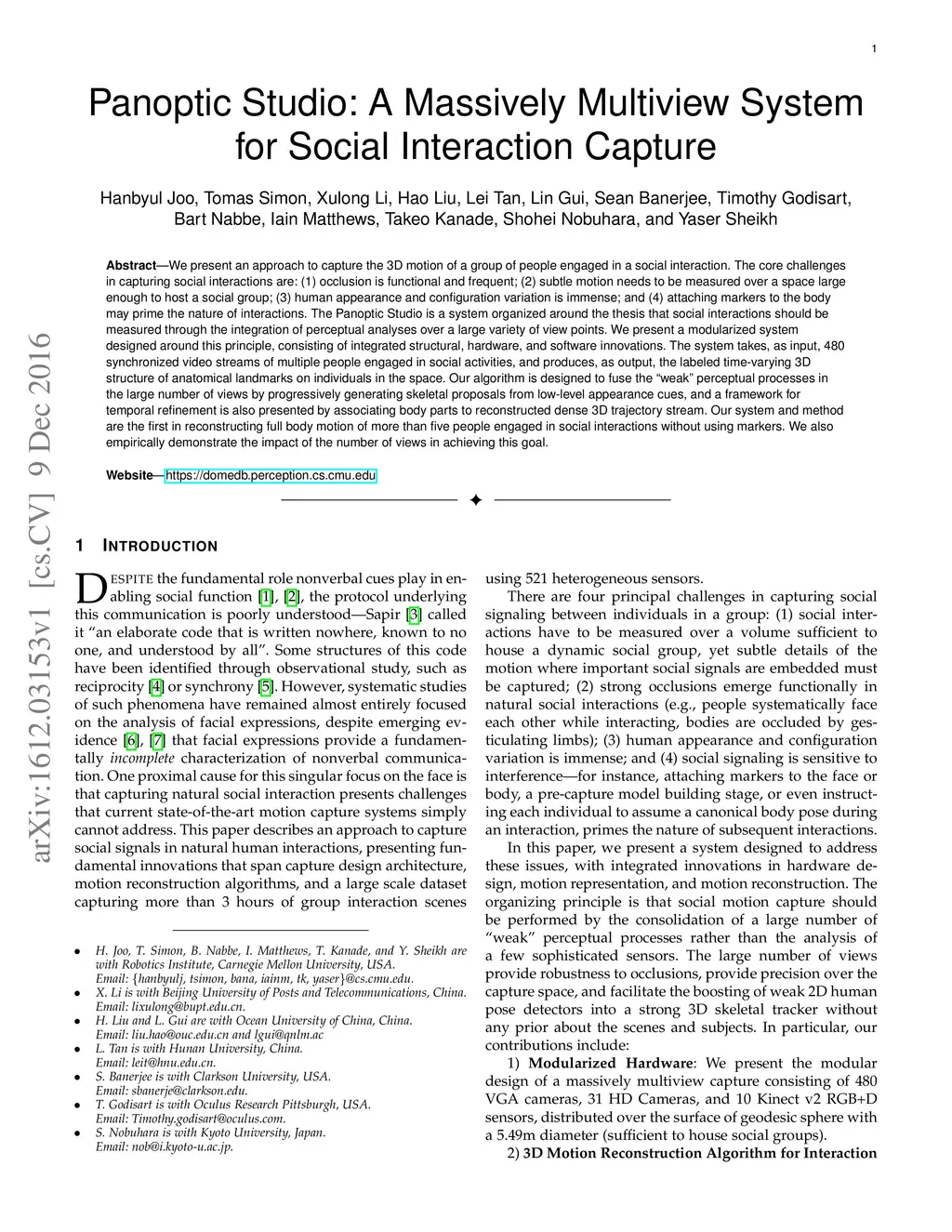 Panoptic Studio: A Massively Multiview System for Social Interaction