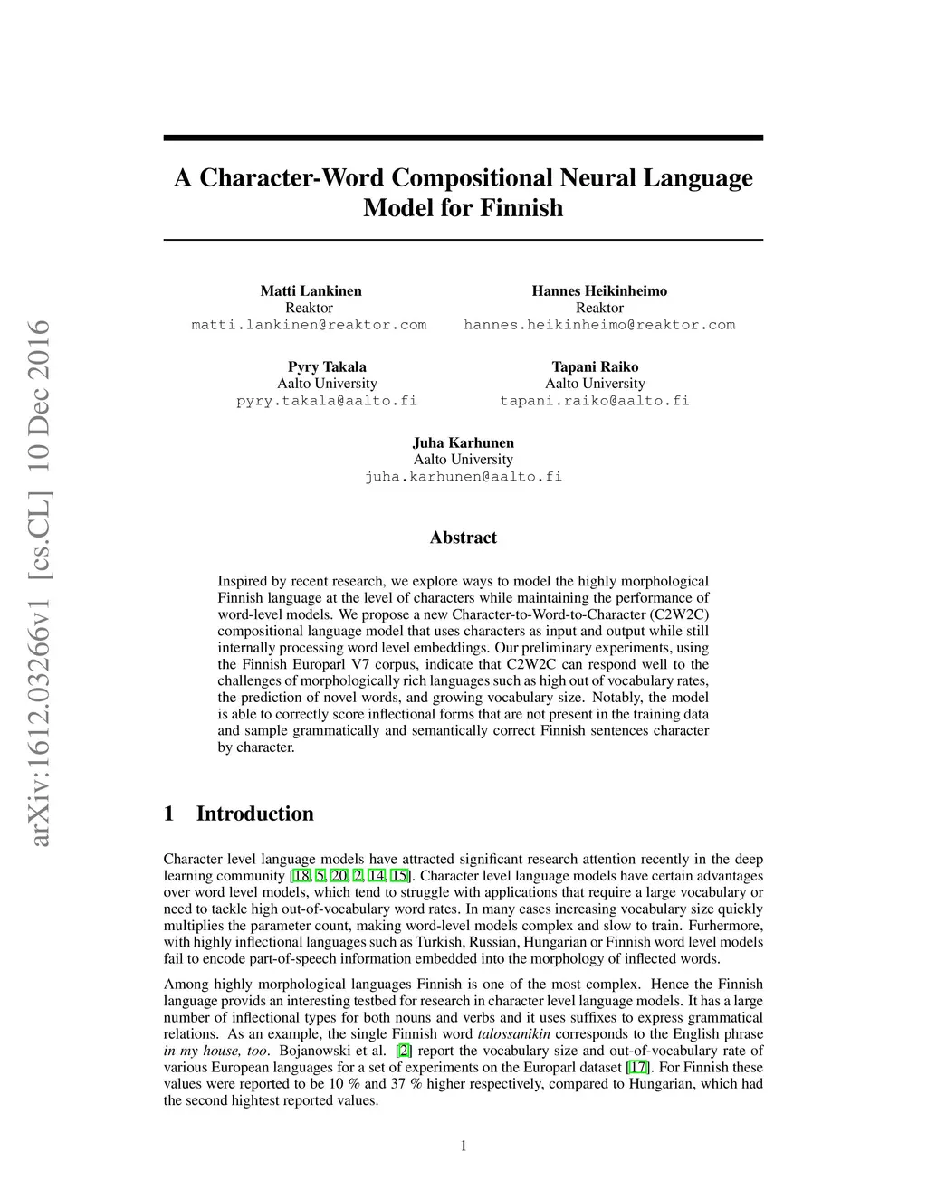 A Character-Word Compositional Neural Language Model for Finnish