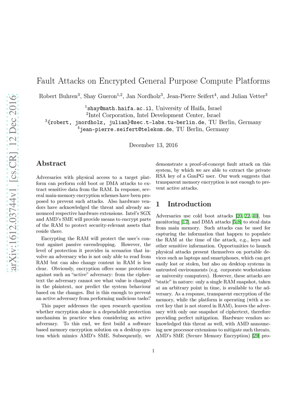 Fault Attacks on Encrypted General Purpose Compute Platforms