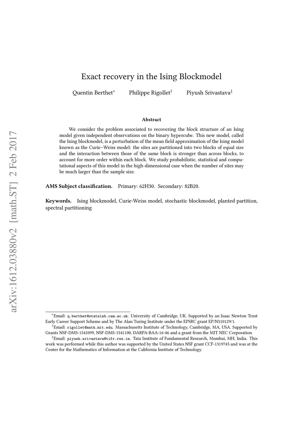 Exact recovery in the Ising blockmodel