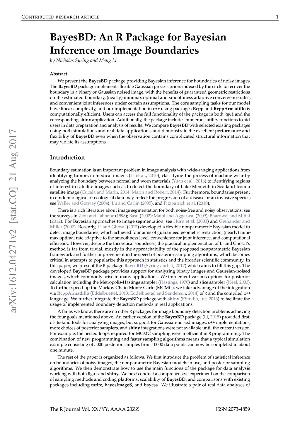 BayesBD: An R Package for Bayesian Inference on Image Boundaries
