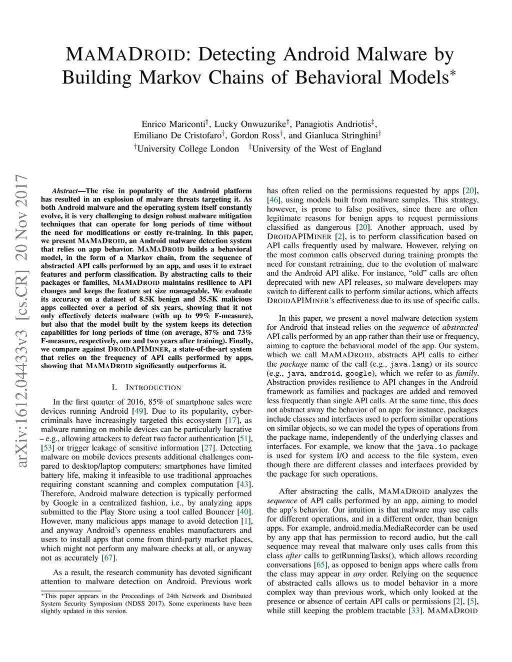 MaMaDroid: Detecting Android Malware by Building Markov Chains of