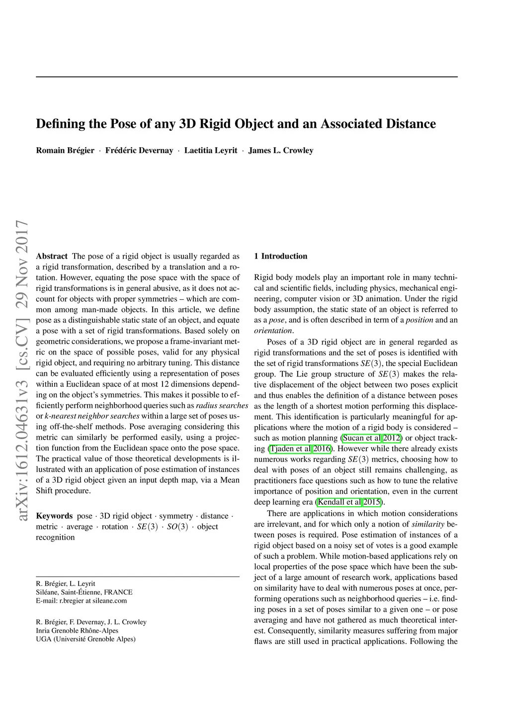 Defining the Pose of any 3D Rigid Object and an Associated Metric