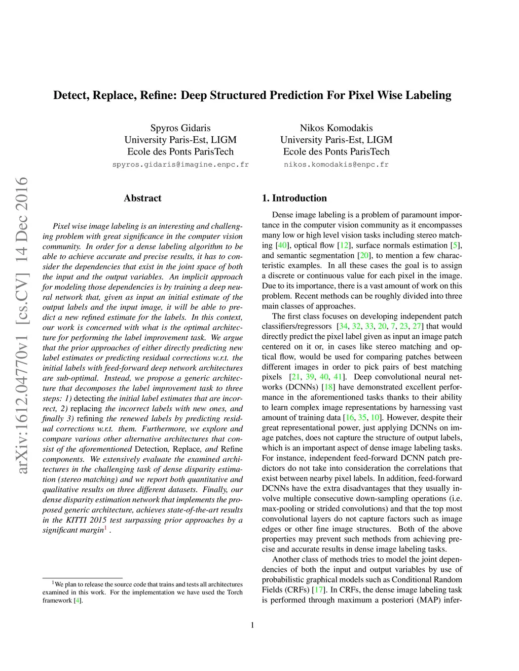 Pixel wise image labeling is an interesting and challenging problem with great significance in the computer vision community. In order for a dense labeling algorithm to be able to achieve accurate and precise results, it has to consider the dependencies that exist in the joint space of both the input and the output variables. An implicit approach for modeling those dependencies is by training a deep neural network that, given as input an initial estimate of the output labels and the input image, it will be able to predict a new refined estimate for the labels. In this context, our work is concerned with what is the optimal architecture for performing the label improvement task. We argue that the prior approaches of either directly predicting new label estimates or predicting residual corrections w.r.t. the initial labels with feed-forward deep network architectures are sub-optimal. Instead, we propose a generic architecture that decomposes the label improvement task to three steps: 1) detecting the initial label estimates that are incorrect, 2) replacing the incorrect labels with new ones, and finally 3) refining the renewed labels by predicting residual corrections w.r.t. them. Furthermore, we explore and compare various other alternative architectures that consist of the aforementioned Detection, Replace, and Refine components. We extensively evaluate the examined architectures in the challenging task of dense disparity estimation (stereo matching) and we report both quantitative and qualitative results on three different datasets. Finally, our dense disparity estimation network that implements the proposed generic architecture, achieves state-of-the-art results in the KITTI 2015 test surpassing prior approaches by a significant margin.