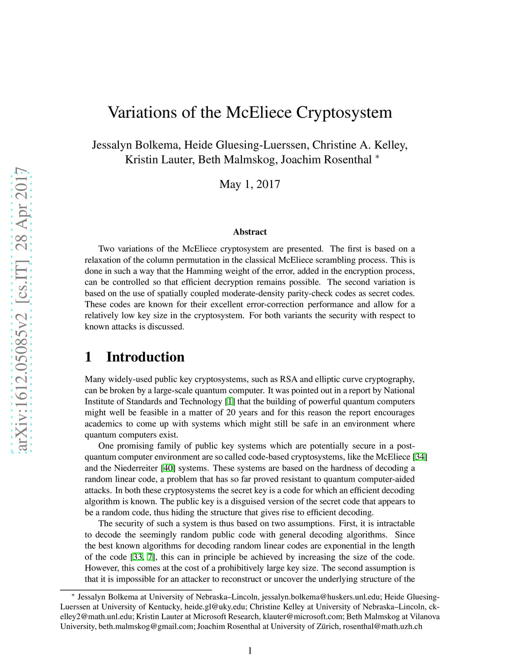 Two variations of the McEliece cryptosystem are presented. The first one is based on a relaxation of the column permutation in the classical McEliece scrambling process. This is done in such a way that the Hamming weight of the error, added in the encryption process, can be controlled so that efficient decryption remains possible. The second variation is based on the use of spatially coupled moderate-density parity-check codes as secret codes. These codes are known for their excellent error-correction performance and allow for a relatively low key size in the cryptosystem. For both variants the security with respect to known attacks is discussed.