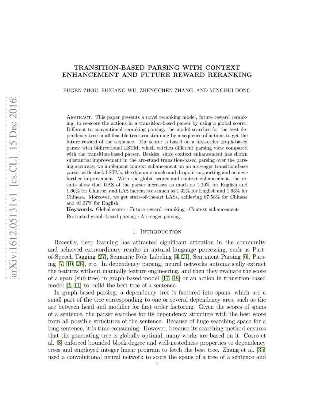 Transition-based Parsing with Context Enhancement and Future Reward