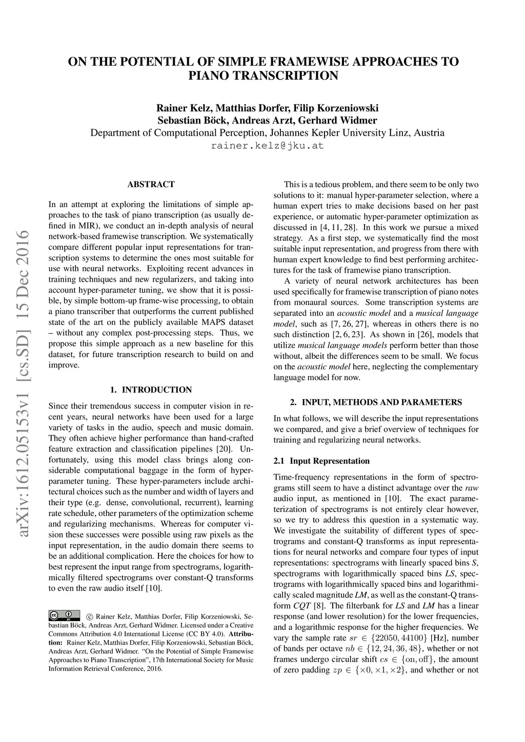 In an attempt at exploring the limitations of simple approaches to the task of piano transcription (as usually defined in MIR), we conduct an in-depth analysis of neural network-based framewise transcription. We systematically compare different popular input representations for transcription systems to determine the ones most suitable for use with neural networks. Exploiting recent advances in training techniques and new regularizers, and taking into account hyper-parameter tuning, we show that it is possible, by simple bottom-up frame-wise processing, to obtain a piano transcriber that outperforms the current published state of the art on the publicly available MAPS dataset -- without any complex post-processing steps. Thus, we propose this simple approach as a new baseline for this dataset, for future transcription research to build on and improve.