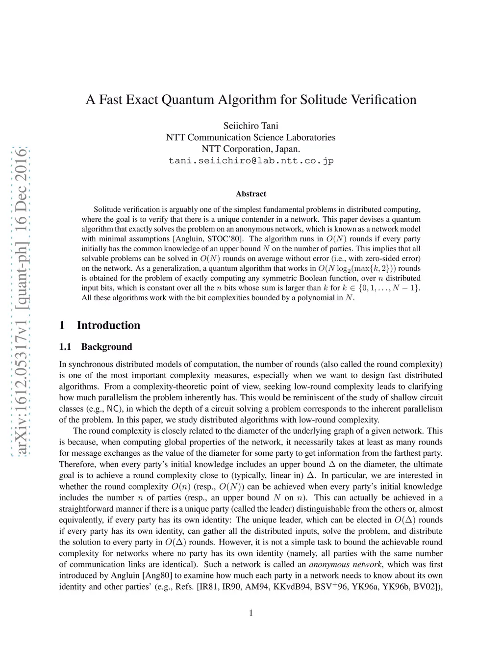 A Fast Exact Quantum Algorithm for Solitude Verification