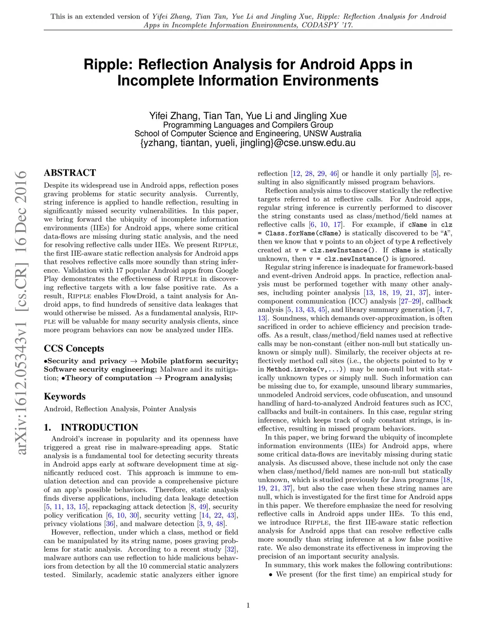 Ripple: Reflection Analysis for Android Apps in Incomplete Information