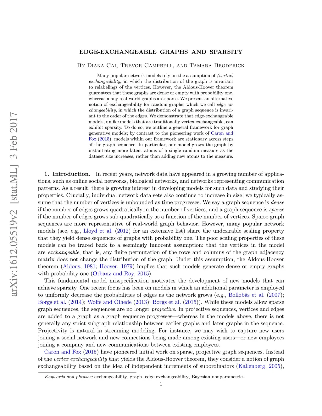 Edge-exchangeable graphs and sparsity (NIPS 2016)