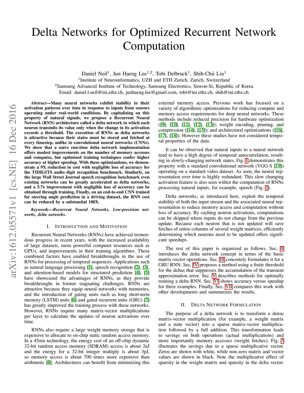 Delta Networks for Optimized Recurrent Network Computation