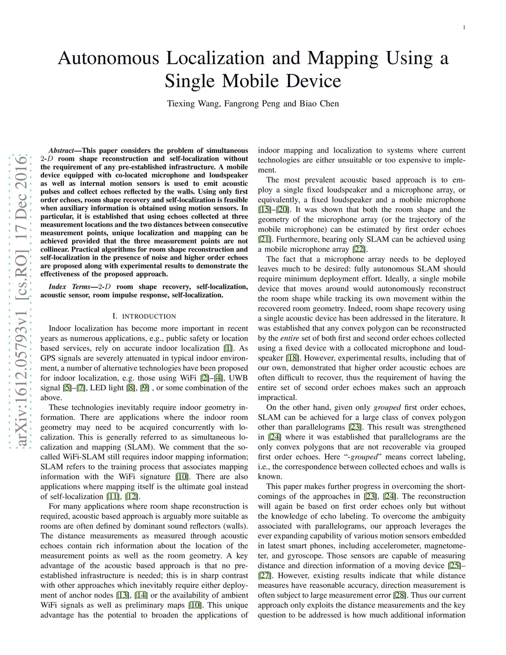 Autonomous Localization and Mapping Using a Single Mobile Device