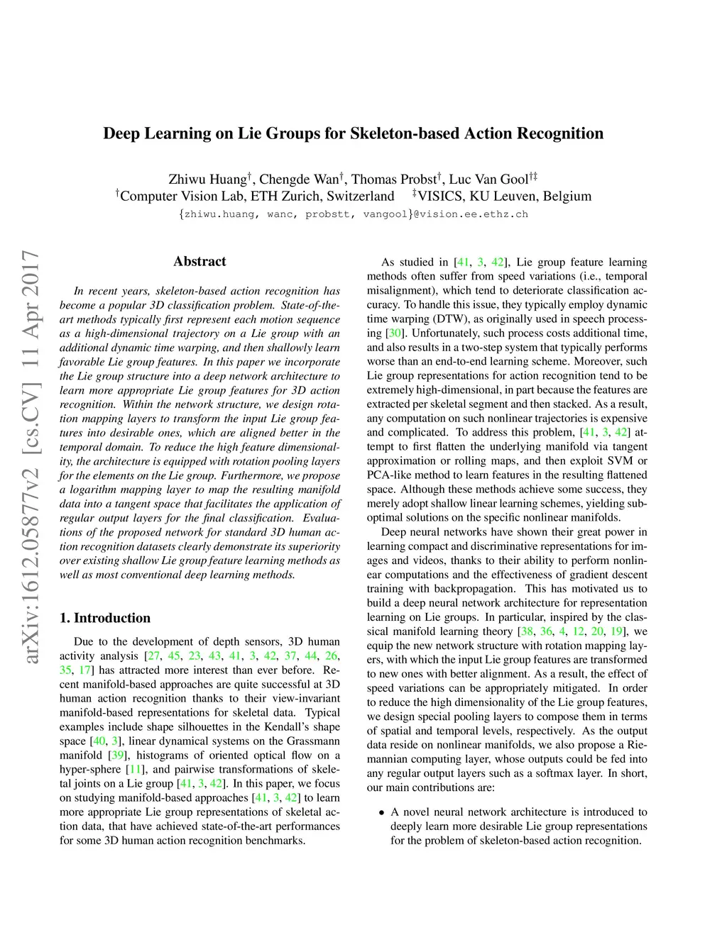 Deep Learning on Lie Groups for Skeleton-based Action Recognition