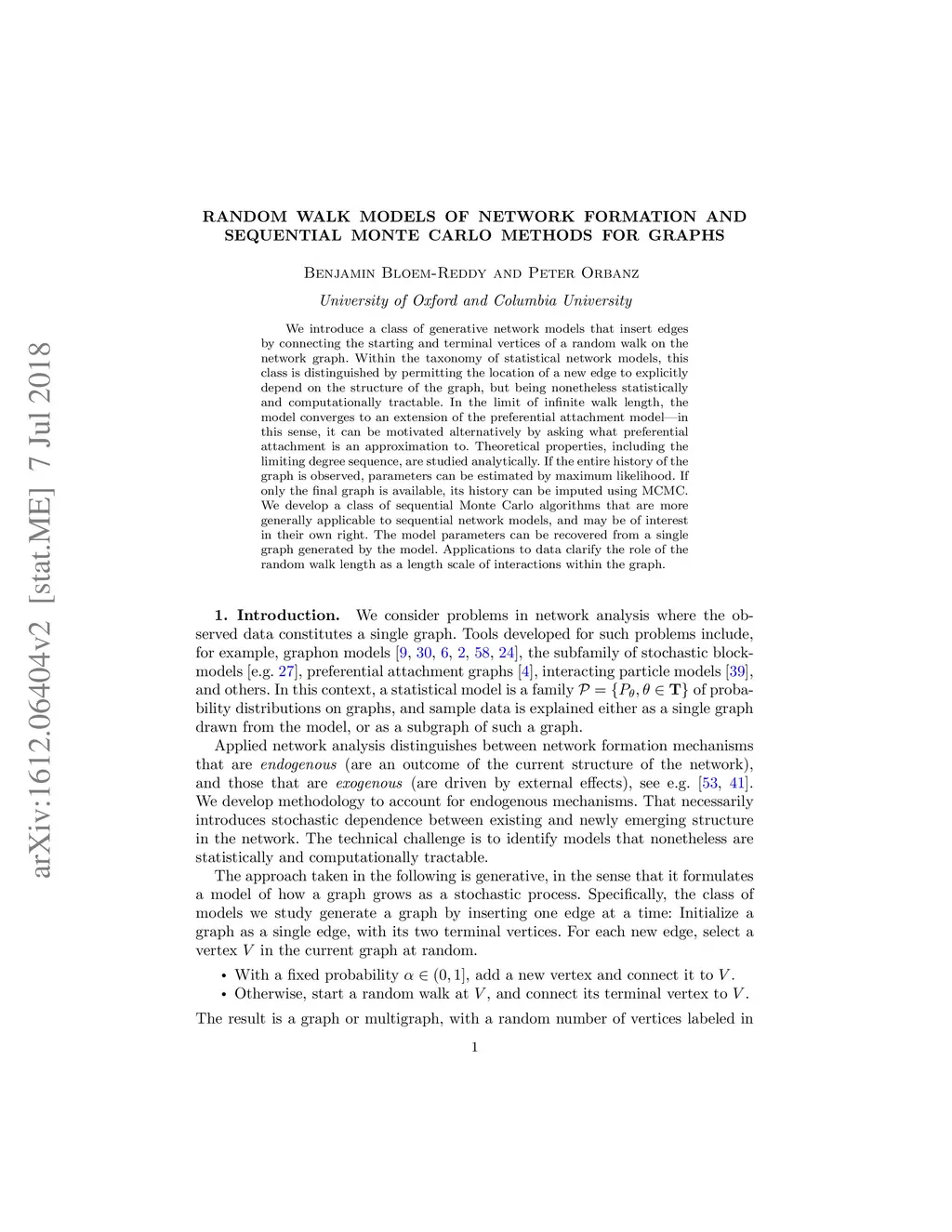 Random Walk Models of Network Formation and Sequential Monte Carlo