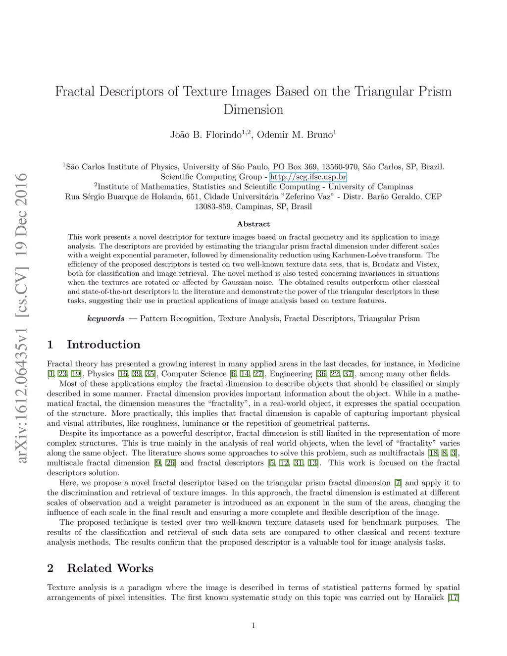 Fractal Descriptors of Texture Images Based on the Triangular Prism