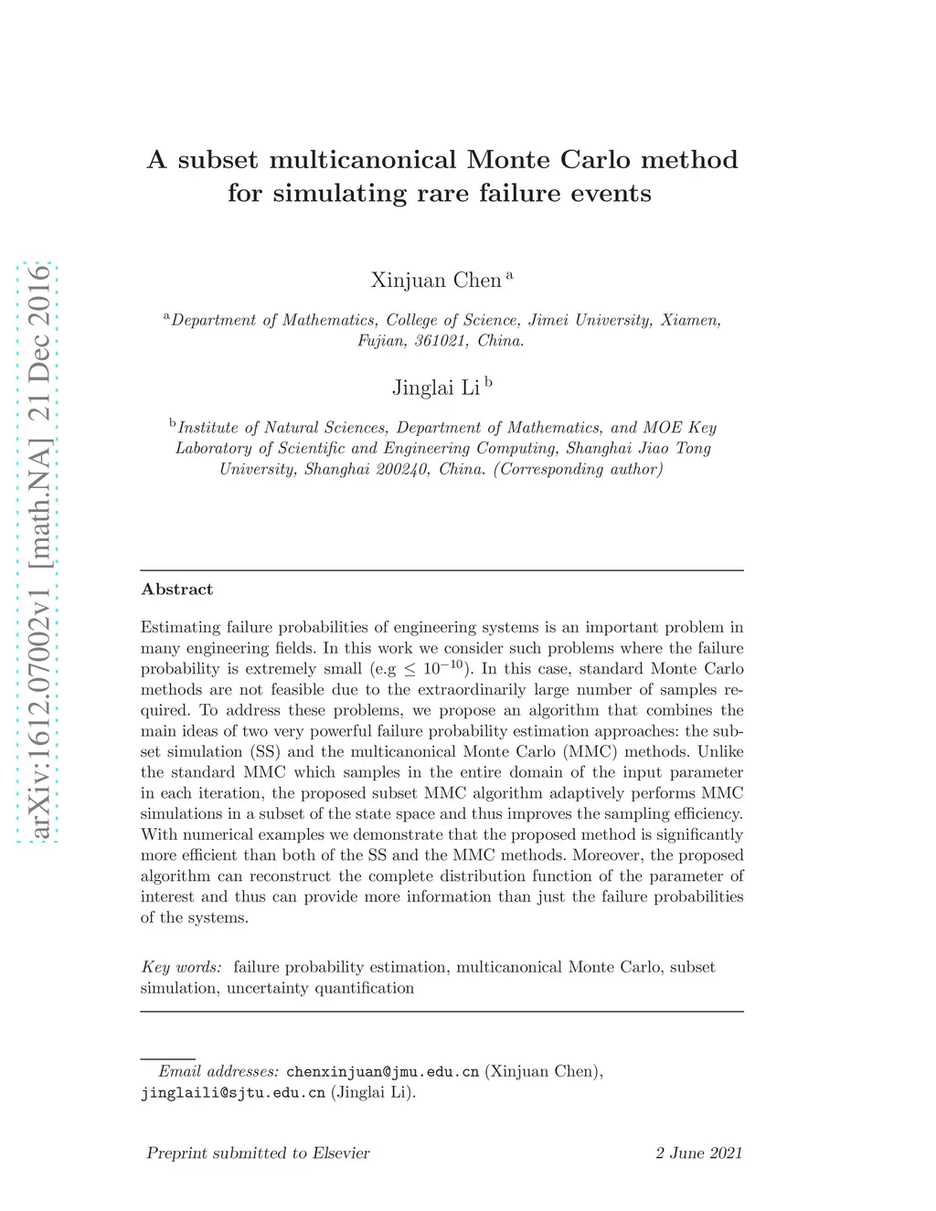 A subset multicanonical Monte Carlo method for simulating rare failure