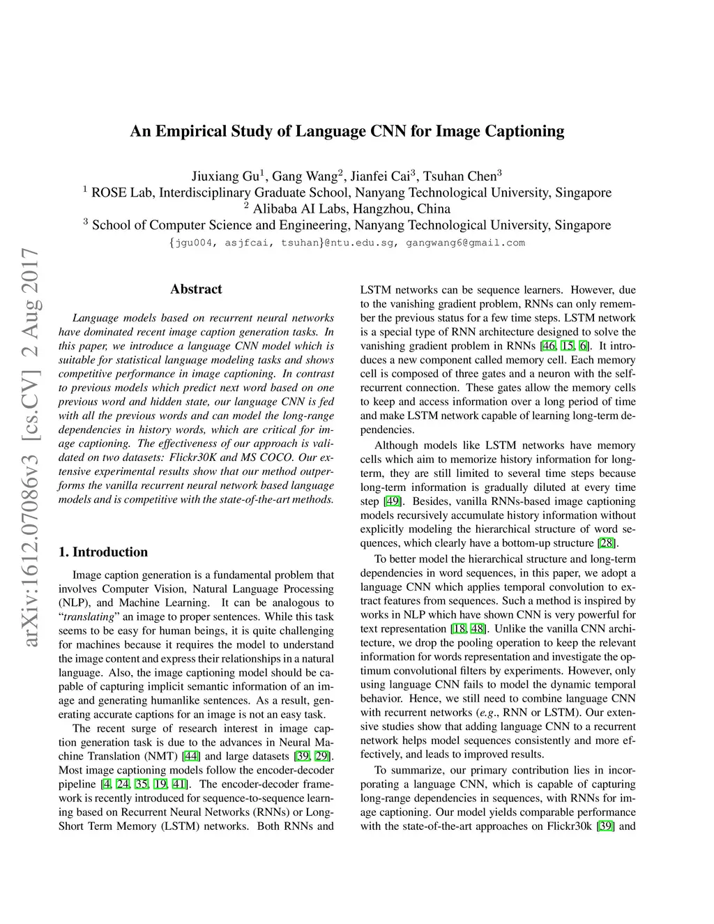 An Empirical Study of Language CNN for Image Captioning
