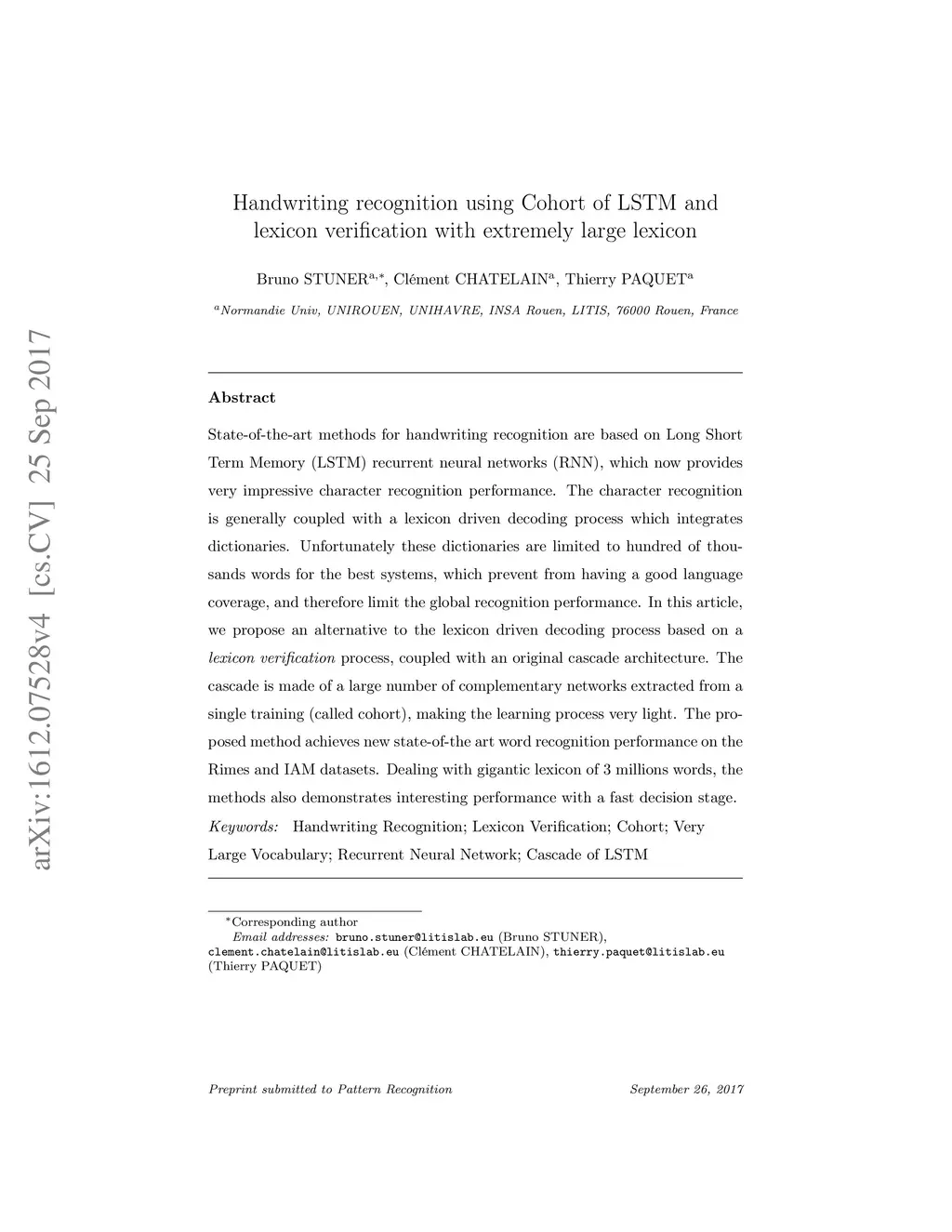 Handwriting recognition using Cohort of LSTM and lexicon verification