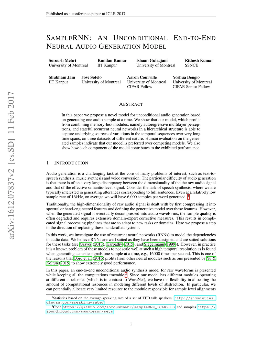 SampleRNN: An Unconditional End-to-End Neural Audio Generation Model