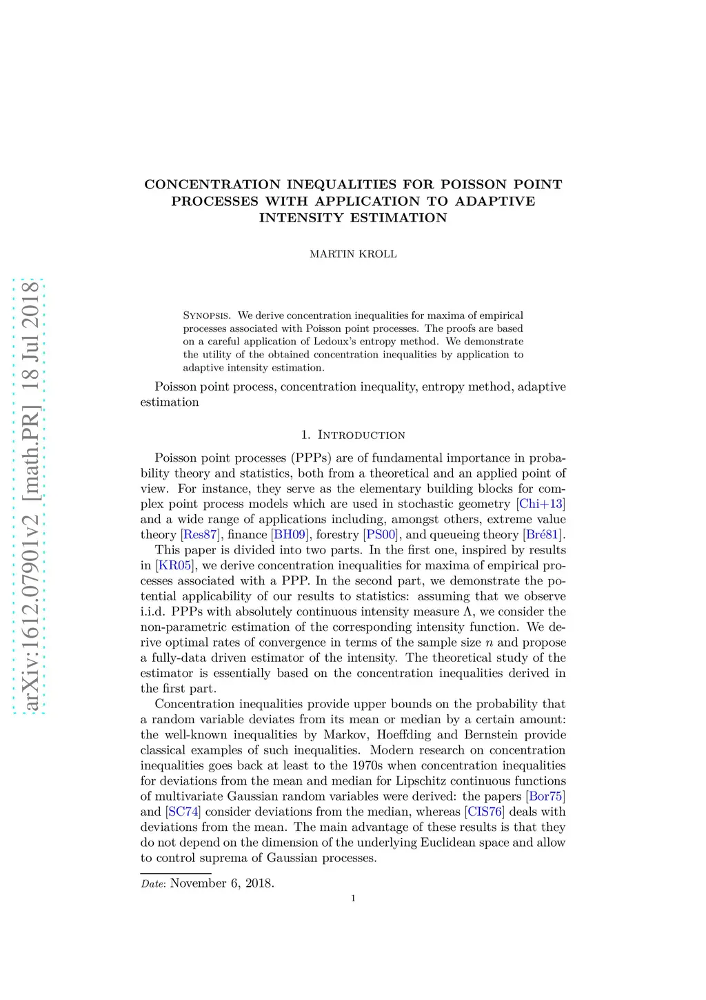 We derive concentration inequalities for maxima of empirical processes associated with independent but not necessarily identically distributed Poisson point processes. The proofs are based on a careful application of Ledoux's entropy method. We demonstrate the utility of the obtained concentration inequalities by application to adaptive intensity estimation.