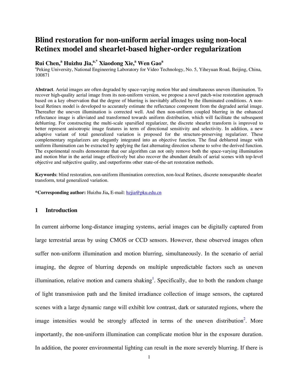 Blind restoration for non-uniform aerial images using non-local Retinex