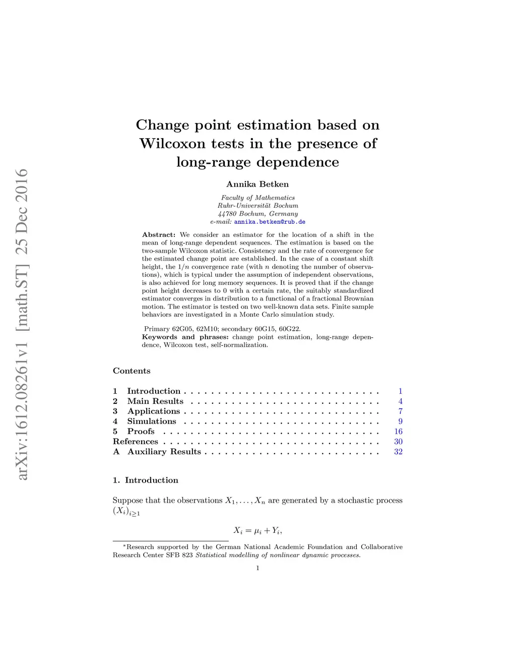We consider an estimator for the location of a shift in the mean of long-range dependent sequences. The estimation is based on the two-sample Wilcoxon statistic. Consistency and the rate of convergence for the estimated change point are established. In the case of a constant shift height, the convergence rate (with denoting the number of observations), which is typical under the assumption of independent observations, is also achieved for long memory sequences. It is proved that if the change point height decreases to with a certain rate, the suitably standardized estimator converges in distribution to a functional of a fractional Brownian motion. The estimator is tested on two well-known data sets. Finite sample behaviors are investigated in a Monte Carlo simulation study.