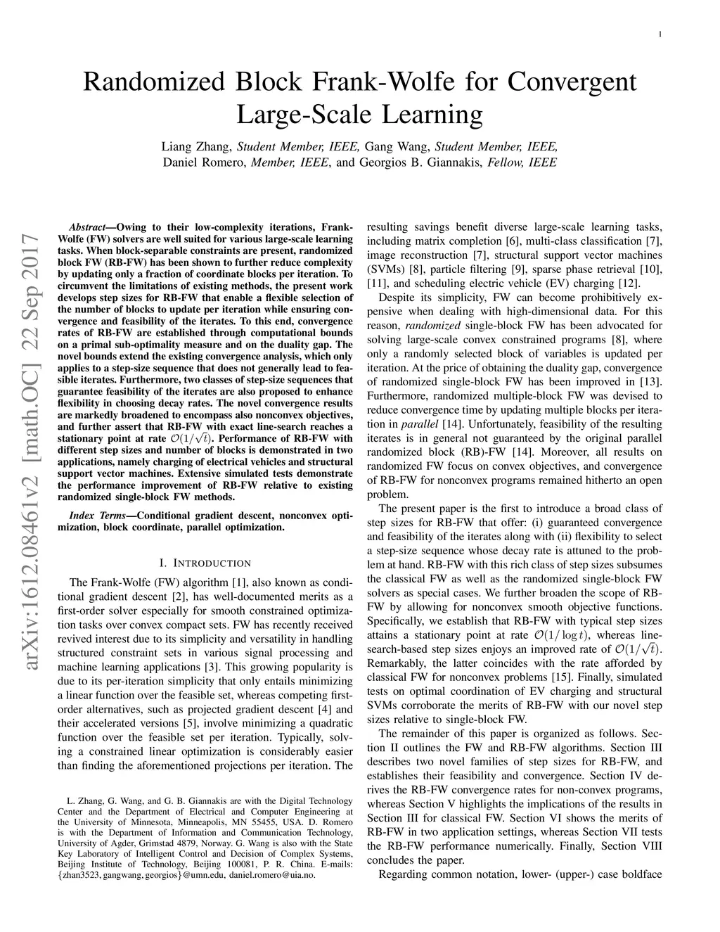 Randomized Block Frank-Wolfe for Convergent Large-Scale Learning