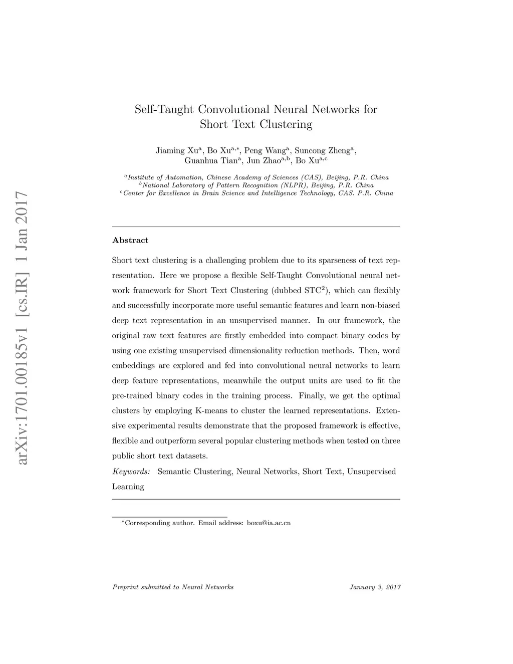 Self-Taught Convolutional Neural Networks for Short Text Clustering