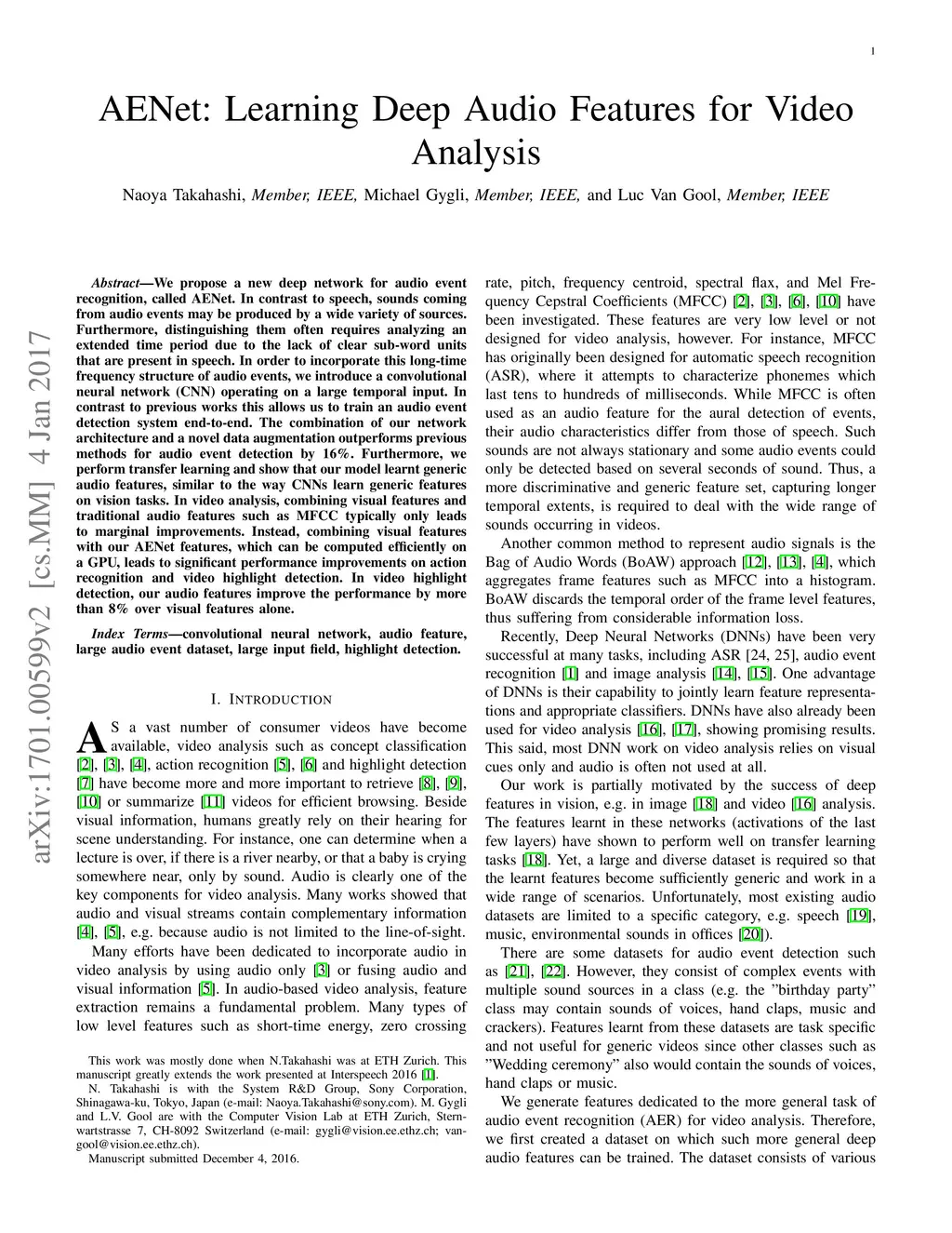 AENet: Learning Deep Audio Features for Video Analysis