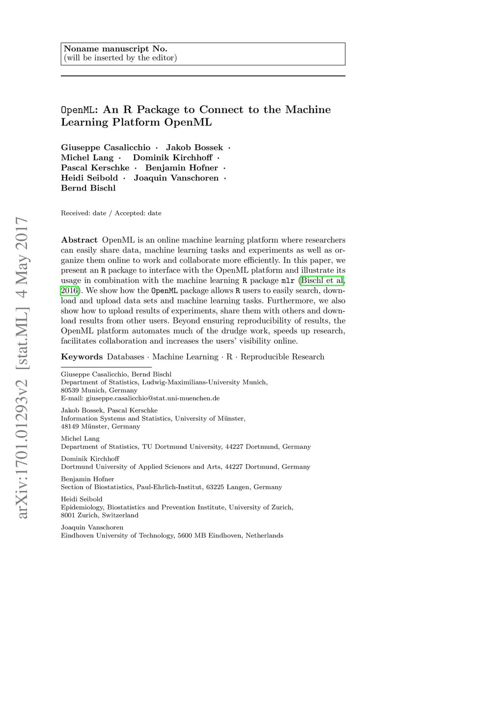 OpenML: An R Package to Connect to the Machine Learning Platform OpenML