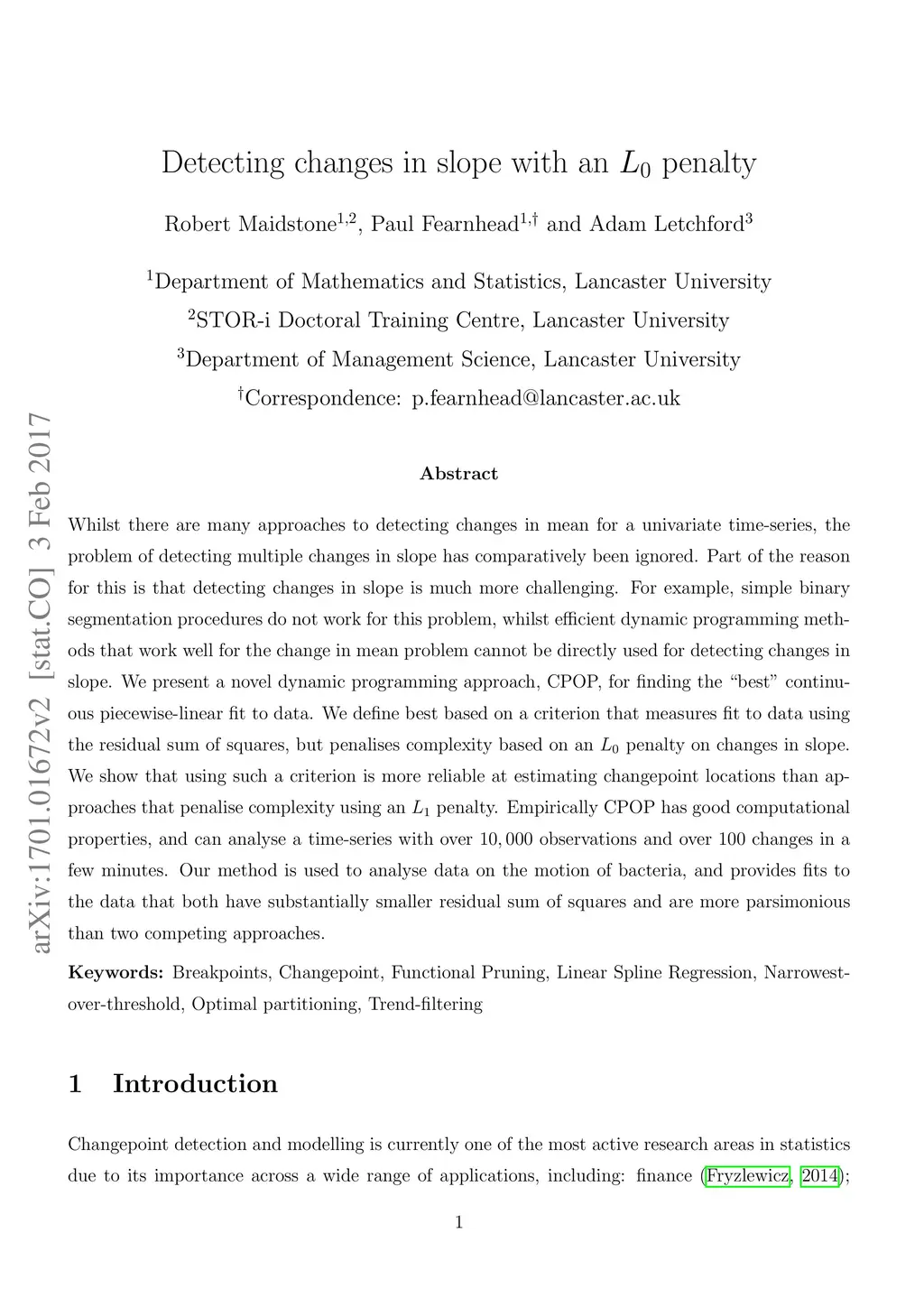 Detecting changes in slope with an penalty