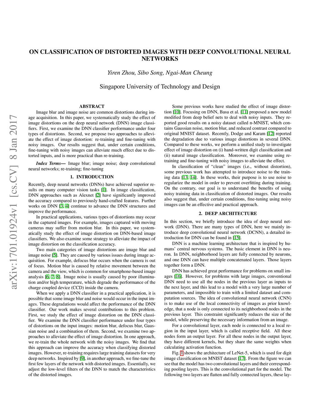 Image blur and image noise are common distortions during image acquisition. In this paper, we systematically study the effect of image distortions on the deep neural network (DNN) image classifiers. First, we examine the DNN classifier performance under four types of distortions. Second, we propose two approaches to alleviate the effect of image distortion: re-training and fine-tuning with noisy images. Our results suggest that, under certain conditions, fine-tuning with noisy images can alleviate much effect due to distorted inputs, and is more practical than re-training.